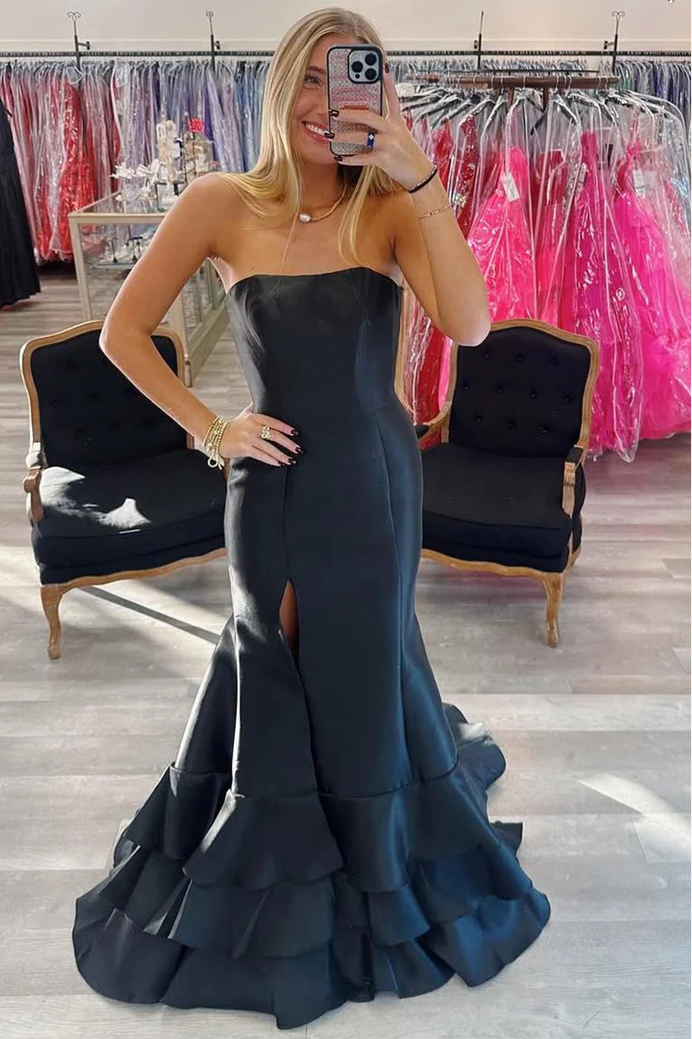 Black Mermaid Strapless Long Prom Dress with Slit