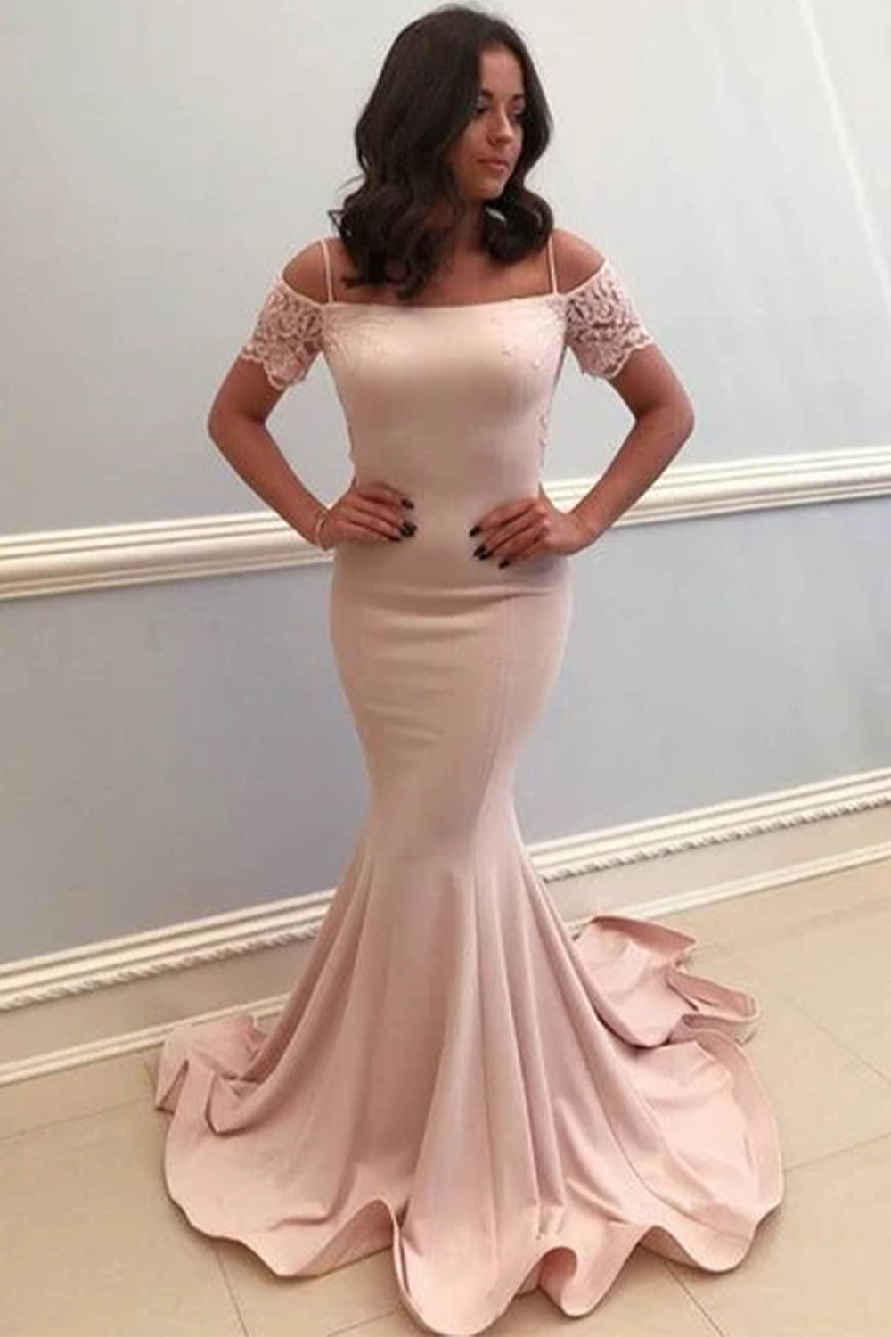 Pink Mermaid Cold Shoulder Satin Long Prom Dress