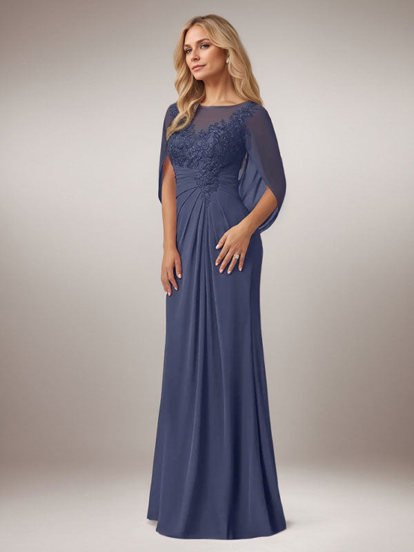 Stormy A-Line Capelet Chiffon Mother Of The Bride Dresses With Lace