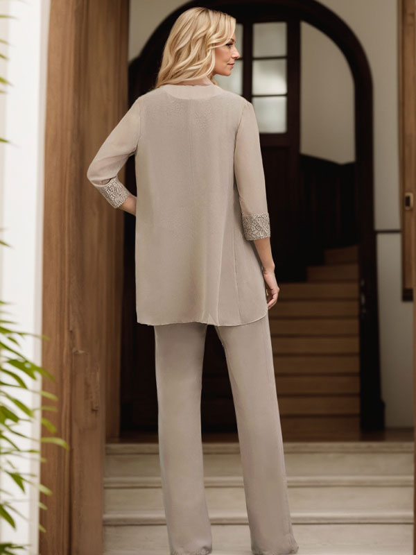 Jumpsuit/Pantsuit Scoop Neck Chiffon Mother Of The Bride Dresses With Lace