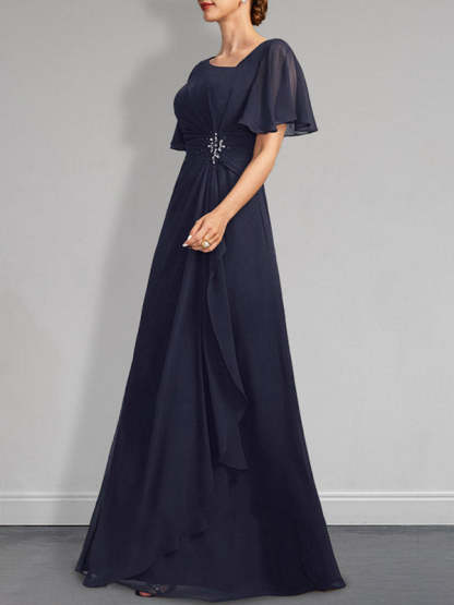 A-line Asymmetrical Floor-Length Chiffon Mother of the Bride Dress With Pleated Beading Sequins