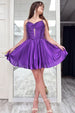 A-Line Purple Spaghetti Straps Metallic Corset Homecoming Dress To Impress