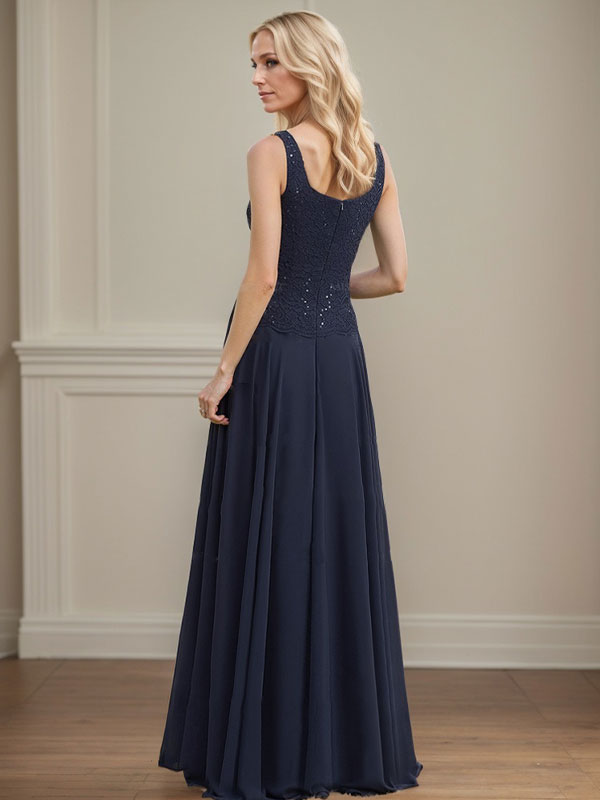 A-Line Square Neckline Chiffon Mother Of The Bride Dresses With Lace
