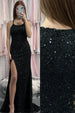 Black Mermaid Sequined Scoop Neck Sleeveless Long Prom Dress with Slit