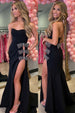 Black Mermaid Strapless High Slit Long Prom Dress with Bows