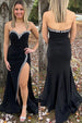 Black Mermaid Strapless Sweetheart Beads Long Prom Dress with Slit
