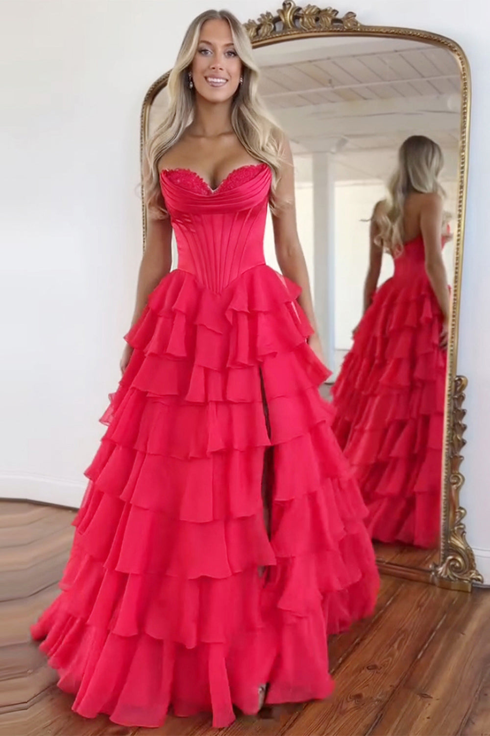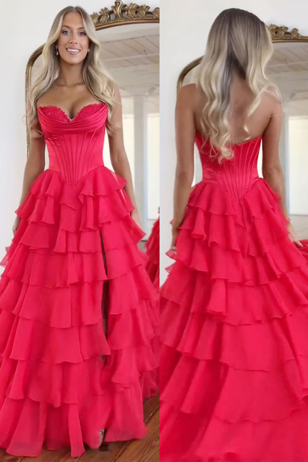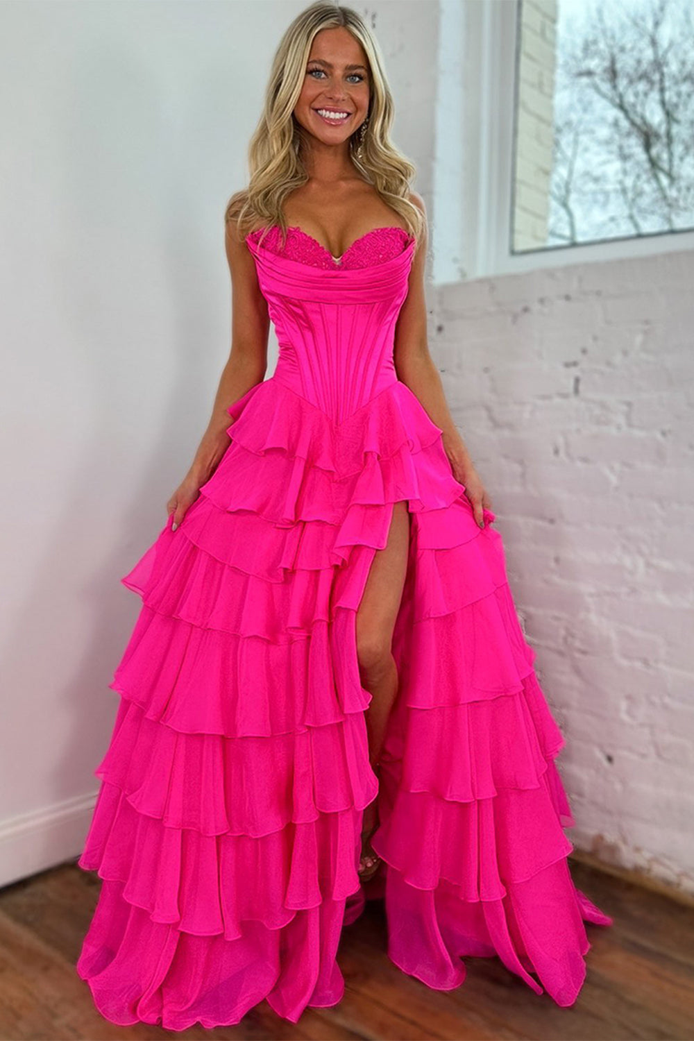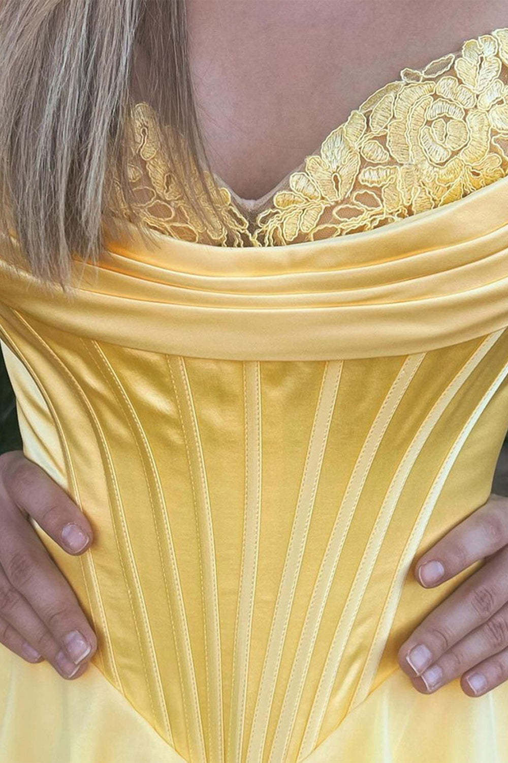 Blue A Line Strapless Satin Corset Long Prom Dress with Ruffle Skirt