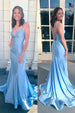 Blue Mermaid V Neck Double Straps Satin Long Prom Dress