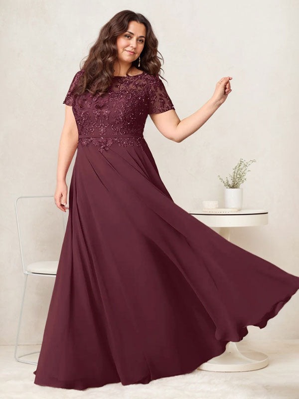 Cabernet A-Line Boatneck Sequins Chiffon Mother of the Bride Dress