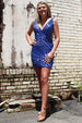 Champagne Mermaid Sequins V-Neck Tight Homecoming Dress