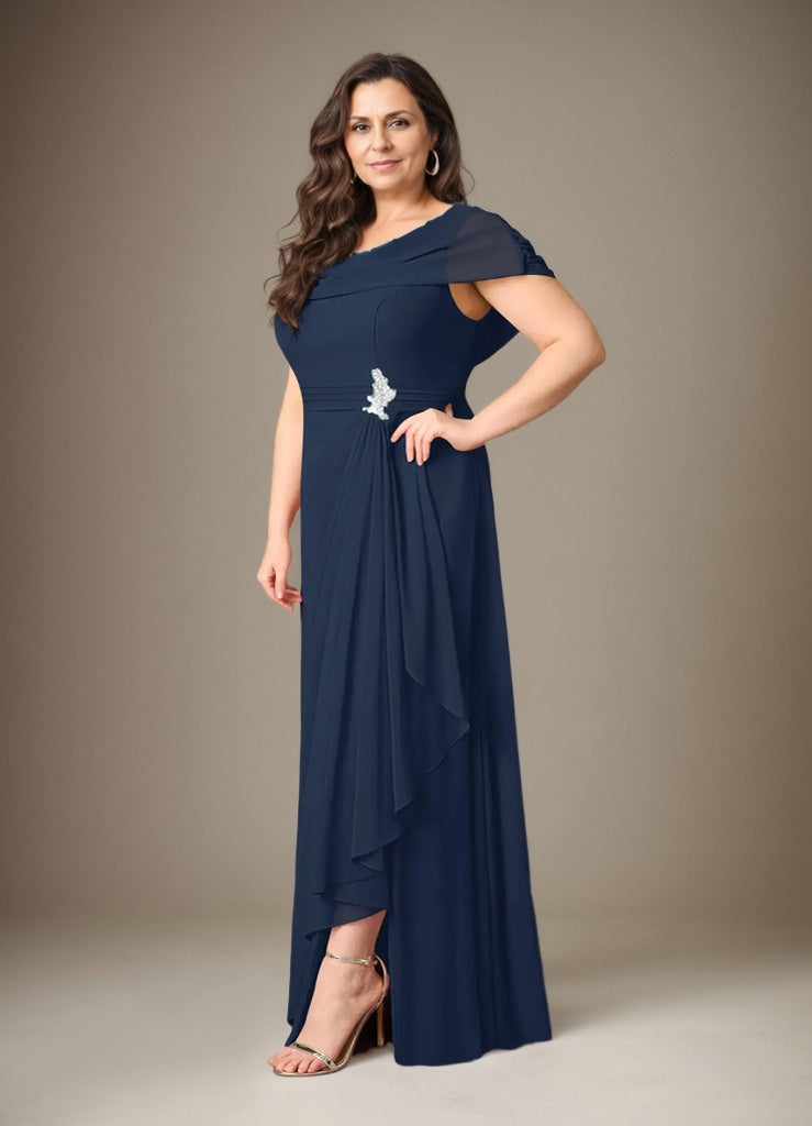 Dark Navy A-Line V-Neck Lace Chiffon Mother of the Bride Dress