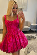 Fuchsia A Line Ruched Floral Short Corset Homecoming Dress