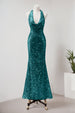 Glitter Royal Blue Mermaid Halter Open Back Long Prom Dress with Sequins