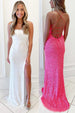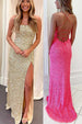 Hot Pink Mermaid Strapless Sequins Long Prom Dress with Slit