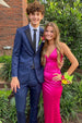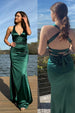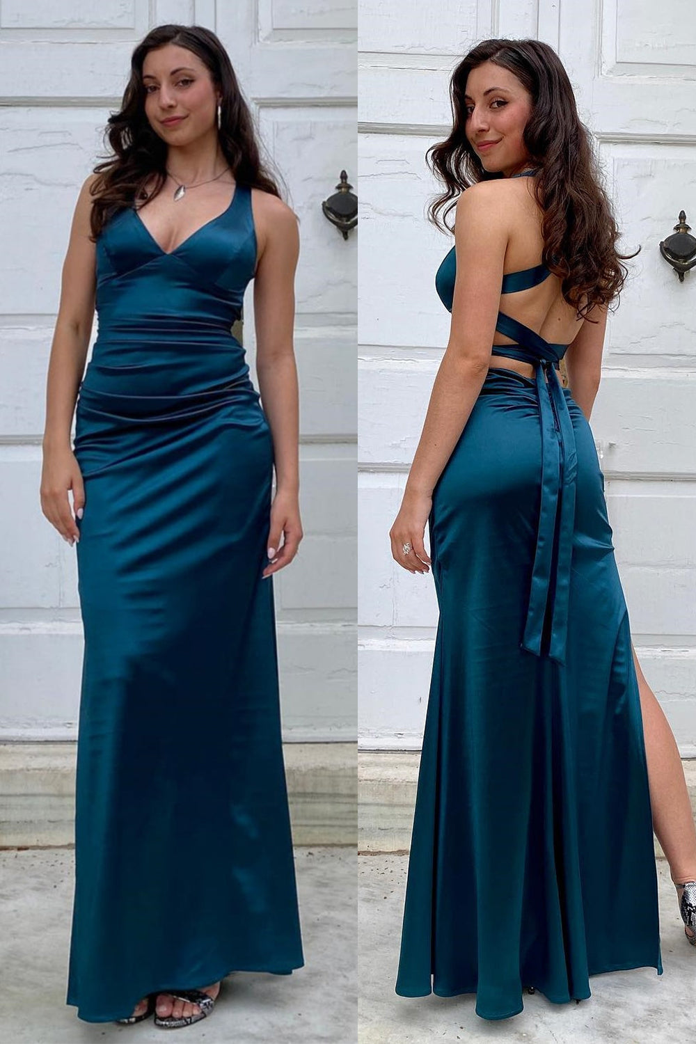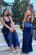 Ink Blue Mermaid V-Neck Criss-Cross Back Long Prom Dress