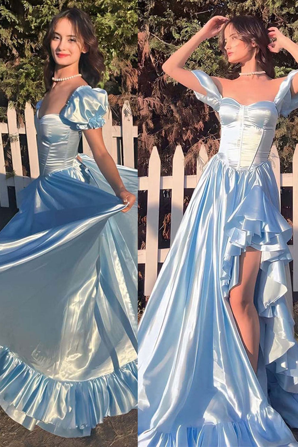 Light Blue A Line Bodice Long Prom Dress with Slit