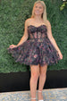 Lilac Corset Sweetheart Floral A-Line Short Homecoming Dress with Ruffles