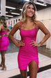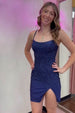 Navy Mermaid Sequins Lace-Up Tight Short Homecoming Dress