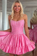 Pink Satin Strapless Ruffled Short Homecoming Dress To Impress