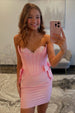 Pink Tight Corset Strapless Short Homecoming Dress To Impress