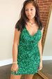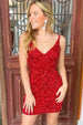 Purple Sheath Spaghetti Straps Sequins Short Homecoming Dress