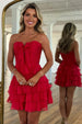 Red A Line Tulle Sweetheart Tiered Homecoming Dress