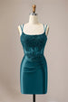 Sparkly Green Spaghetti Straps Beading Corset Homecoming Dress