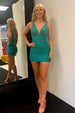 Sparkly Black Beaded V-Neck Backless Tight Short Homecoming Dress
