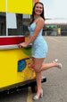 Sparkly Light Blue Lace Tight Short Homecoming Dress