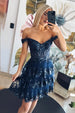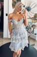 Sparkly Sliver A Line Tiered Lace Short Homecoming Prom Dress
