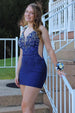 Sparkly Royal Blue Lace-Up Back Sequins Tight Homecoming Dress To Impress