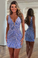 Sparkly Sequins Purple V-Neck Short Homecoming Dress To Impress