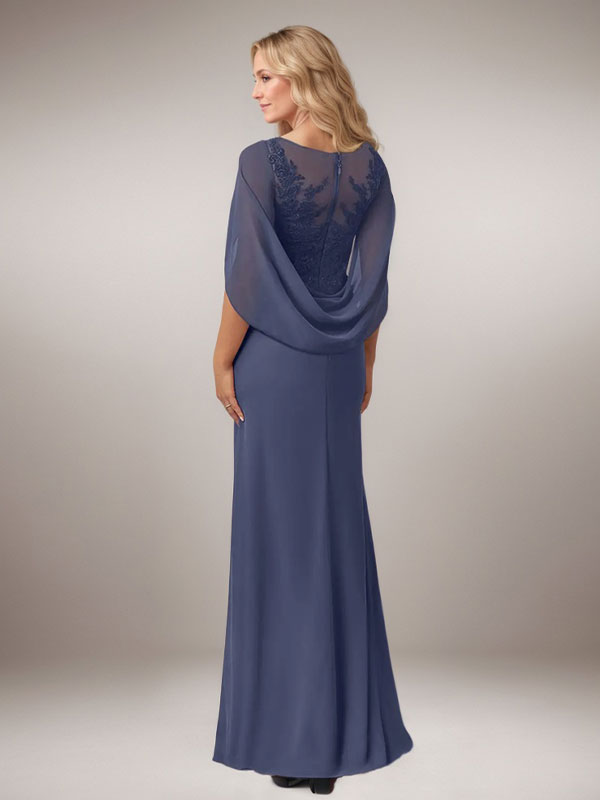 Stormy A-Line Capelet Chiffon Mother Of The Bride Dresses With Lace