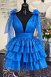 Stunning Pink A-Line V-Neck Short Tiered Homecoming Dress