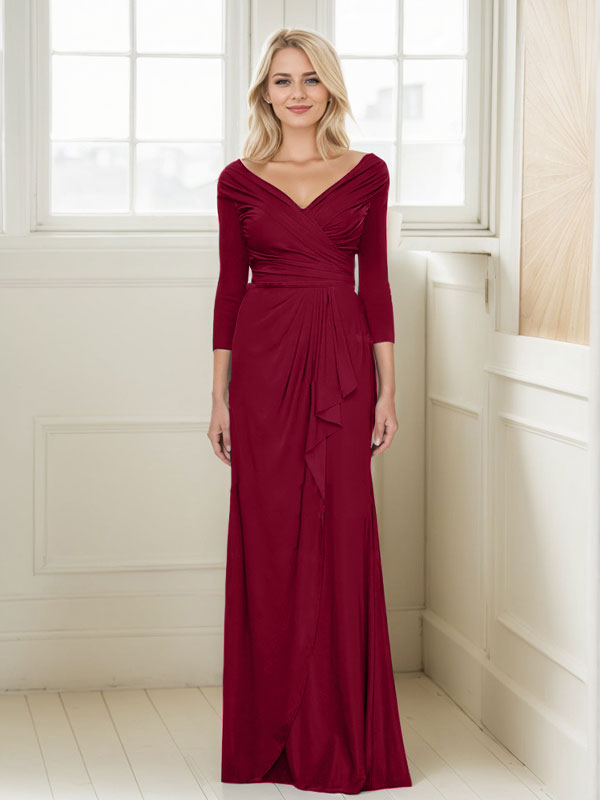 V-Neck Ruched Waist Mother Of The Bride Dresses With Ruffle
