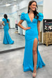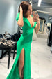 White Mermaid Plunge V Cutout Back Long Prom Dress with Slit