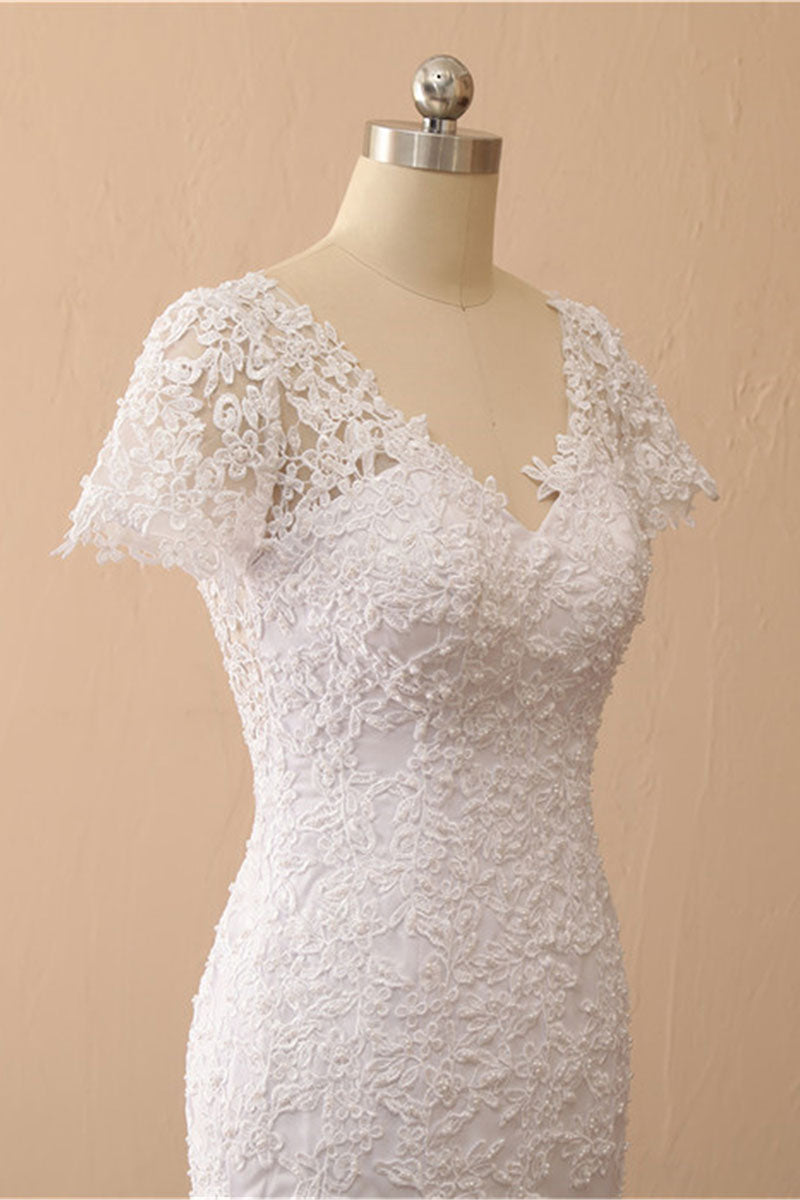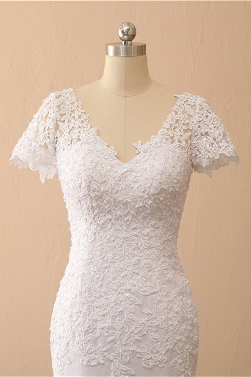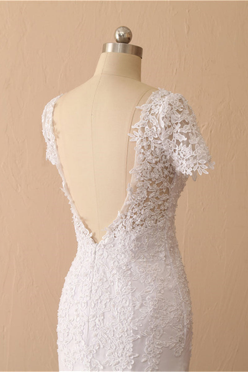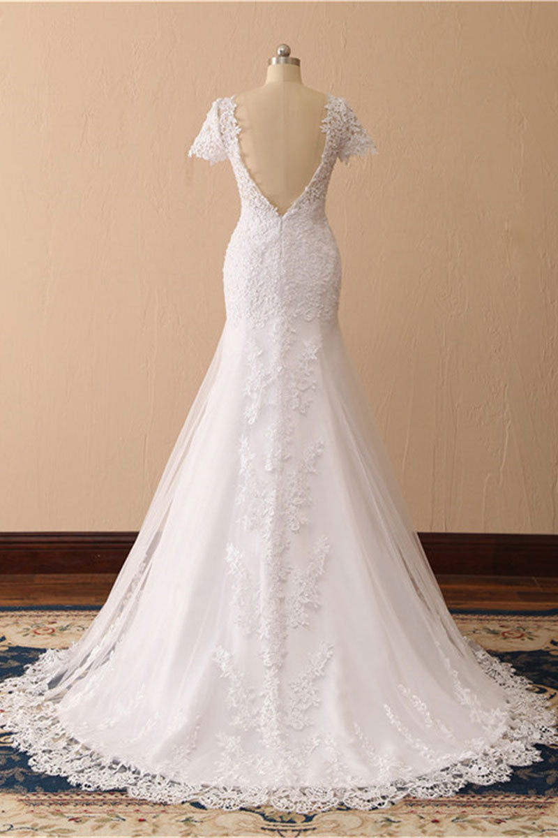 White Mermaid V-Neck Long Bridal Dress With Appliques