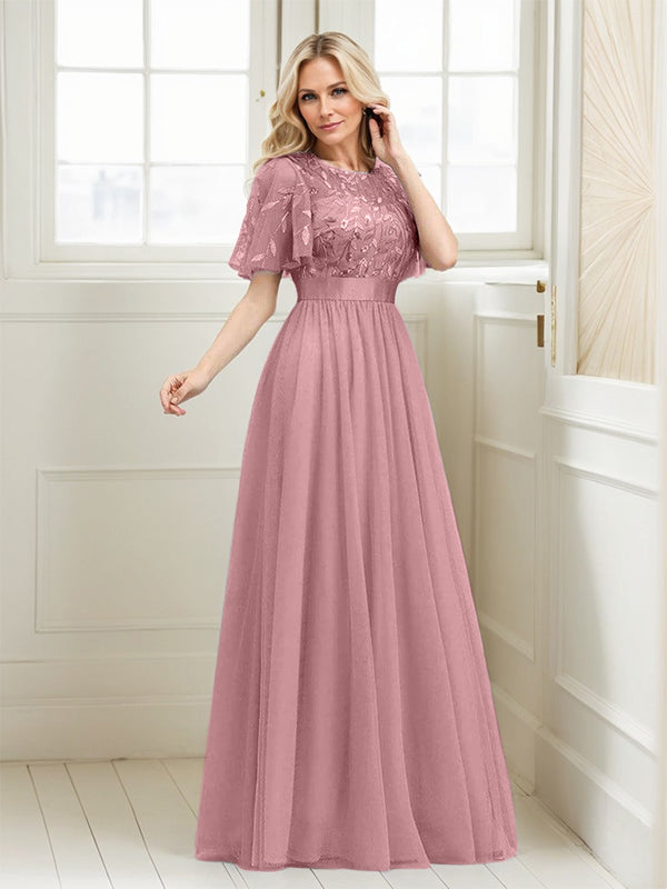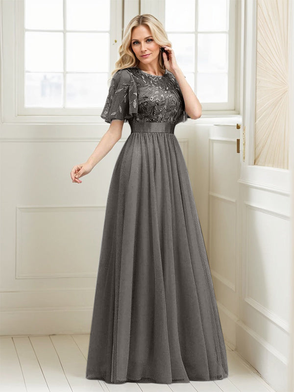 Women's A-Line Short Sleeve Embroidery Mother Of The Bride Dress